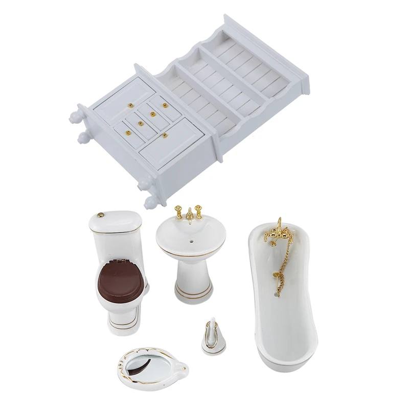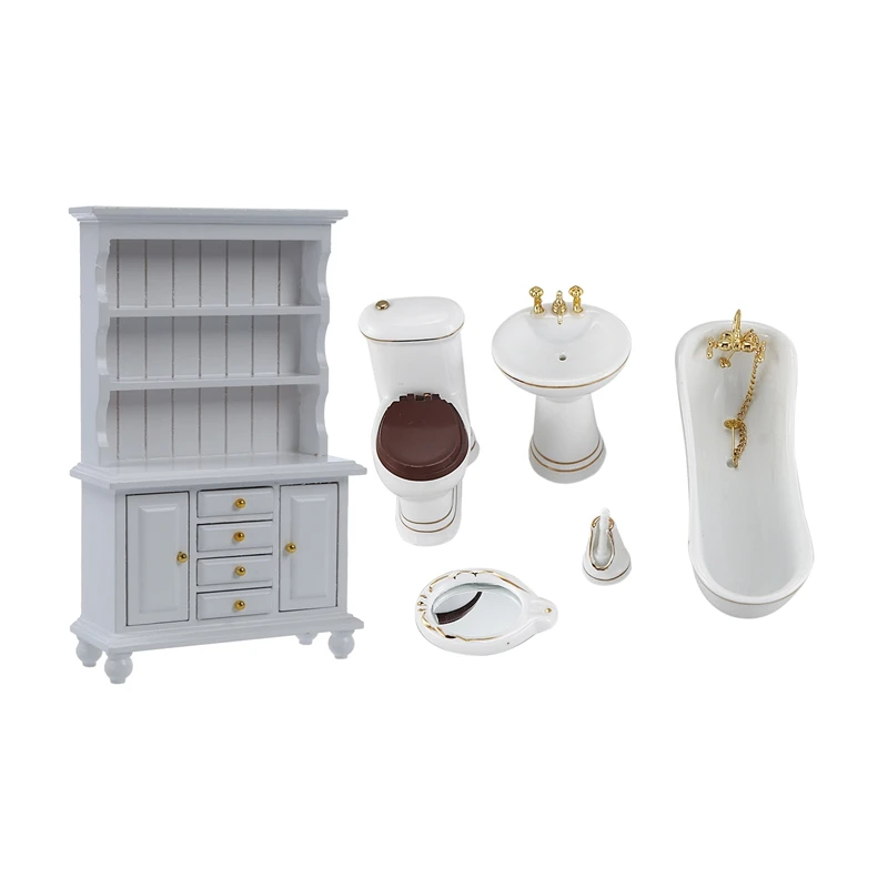 RESPONSE TO "Best Quality 2 Pcs 1/12 Children Doll House Bathroom Furniture Set Bath & Multifunction Wood Cabinet Bookcase Wh"
