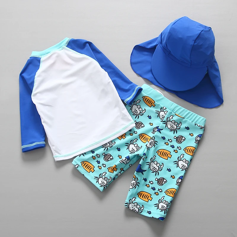 BEST QUALITY Swimsuit Boy Long sleeve Children Swimming Suit 3 Pieces Scaleph print Sun Protection UV Toddler Ba