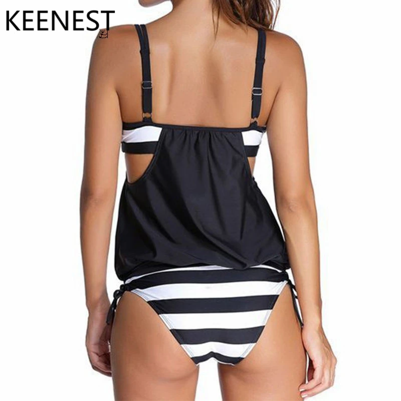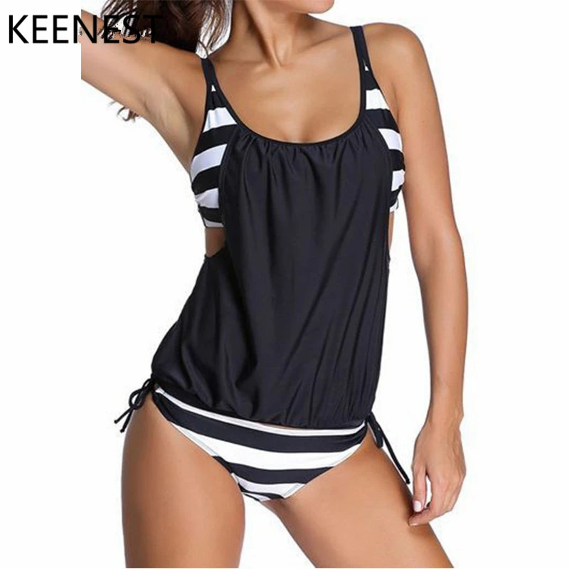 Best Quality KEENEST 2018 Plus Size Tankini Two Piece Women Black Bathing Suit Padded Brasil Sexy Swimming Suit
