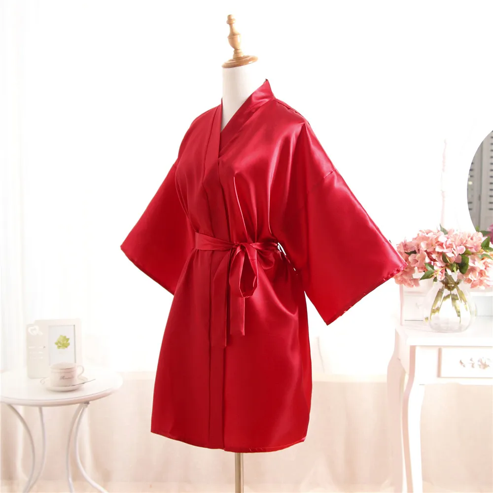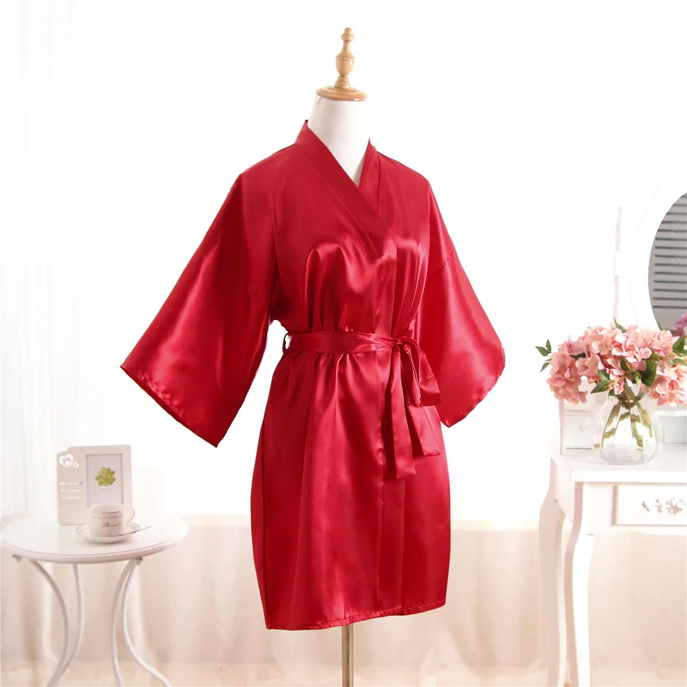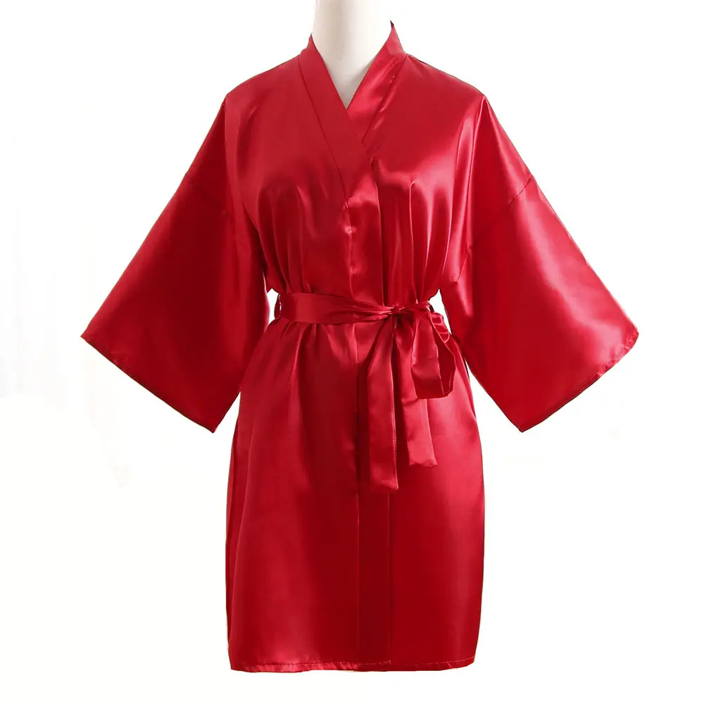 Top Selling Summer Women's Kimono Mini Robe Red Faux Silk Bath Gown Yukata Nightgown Sleepwear Pija