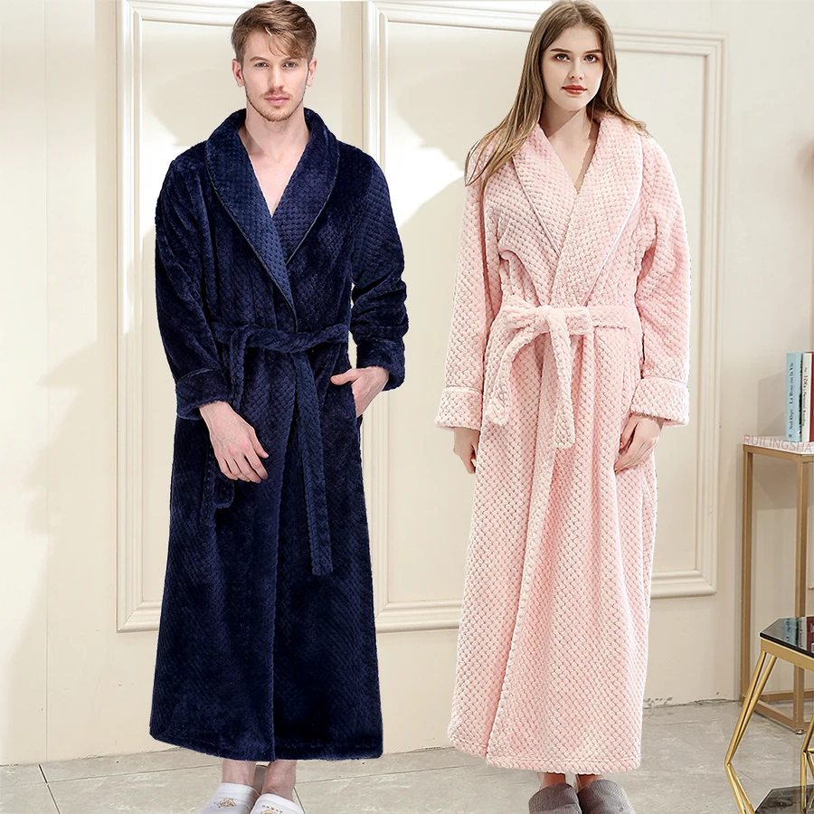 Women Winter Plus Size Long Flannel Bathrobe Pink Warm Kimono Bath Robe Sexy Bridesmaid Dressing Go