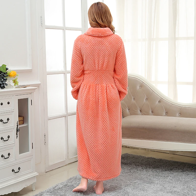 BEST QUALITY Women Winter Plus Size Long Flannel Bathrobe Pink Warm Kimono Bath Robe Sexy Bridesmaid Dressing Go