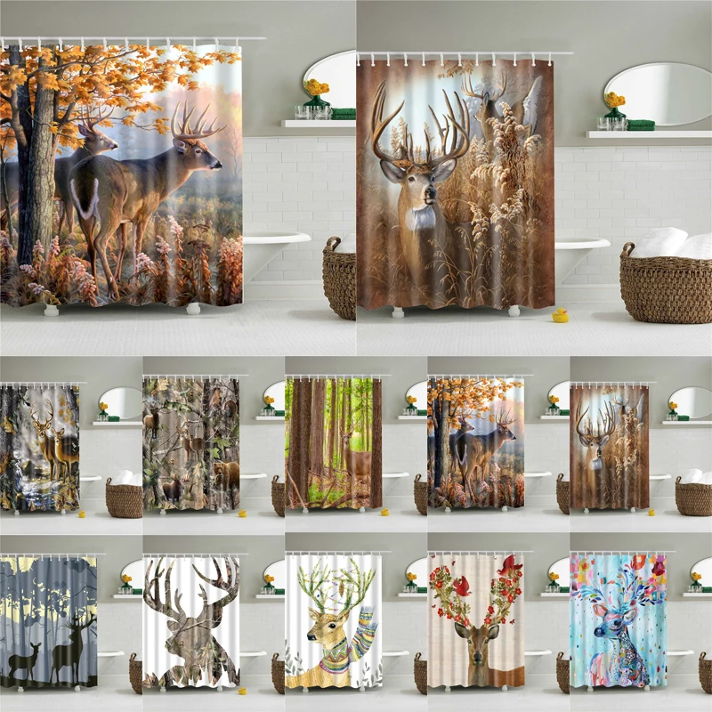Review Top Bath Screens Animals Deer Nordic Pictures Shower Curtain Home Decoration Waterproof Polyester Curta