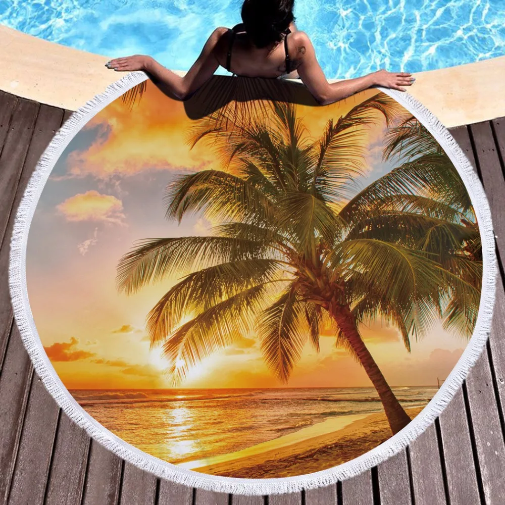 BEST QUALITY Microfiber Summer Round Tassels Beach Towel Tapestry Bohemia Beach Mat Blanket Bath Towel